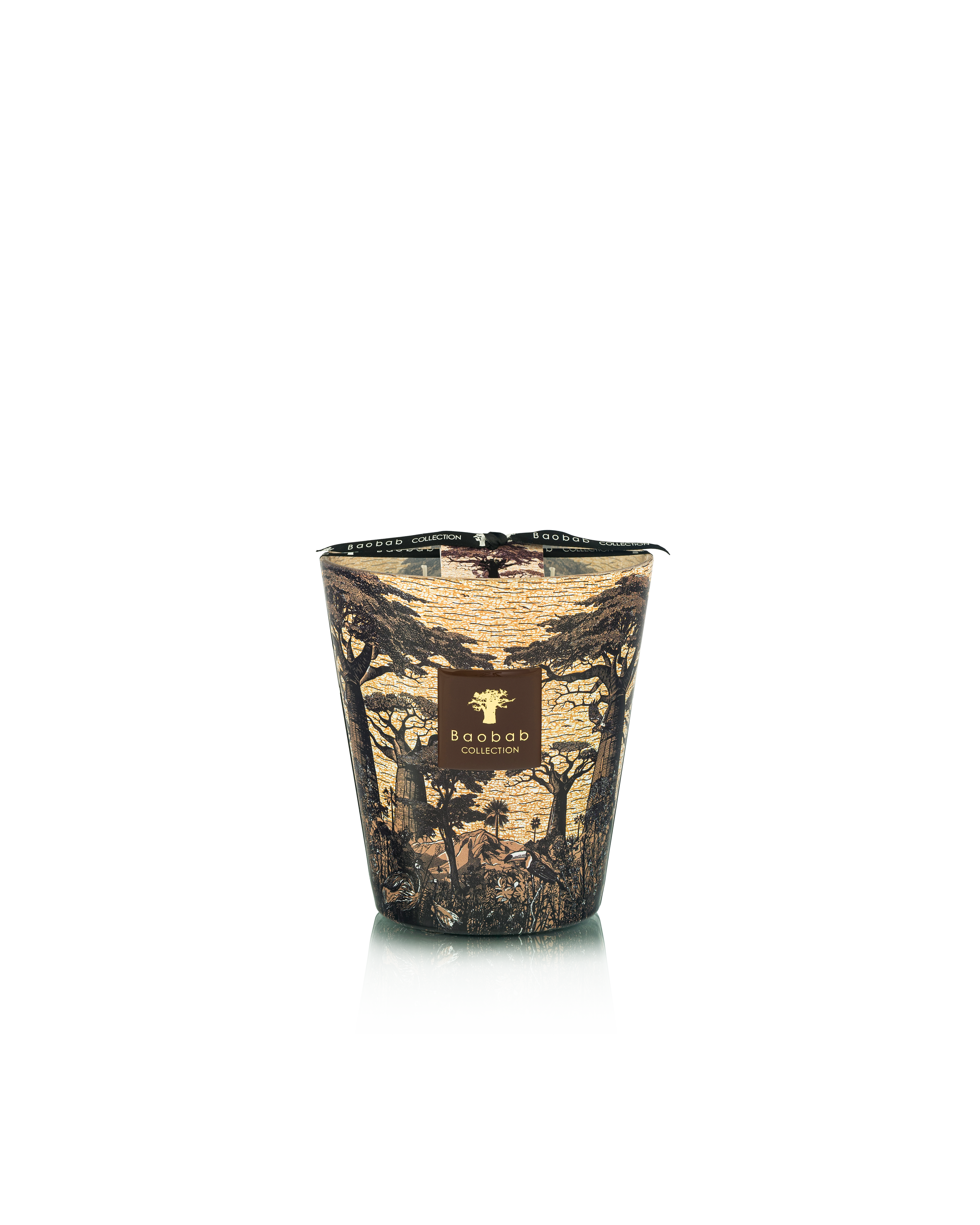 The Mankono scented candle is named after the region in northern Côte d’Ivoire where we pursue our social and ecological actions. Its glass is adorned with an exclusive print, designed by the artists at Uniwax — the emblematic house of African textile printing — which sits harmoniously on the glass, while coming to life under the flame thanks to the expertise of sublimation.