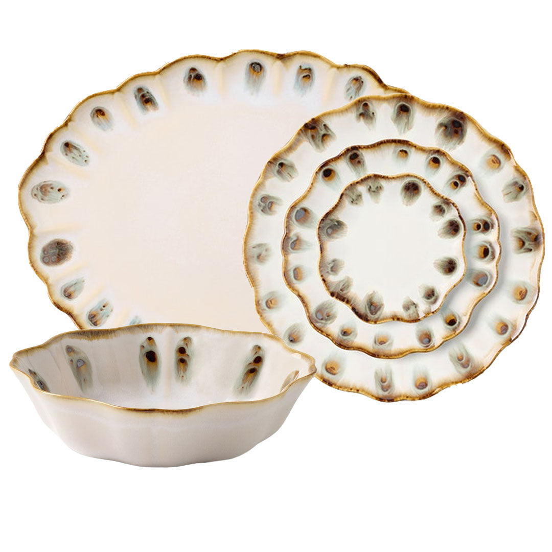 Featuring a scalloped edge dotted with a reactive glaze detail, Blue Pheasant's Amoria serveware brings vintage-inspired elegance to the table, making every gathering a special occasion.