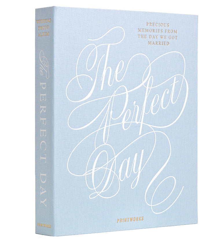Celebrate your most unforgettable moments with The Perfect Day wedding album in soft, featuring an elegant light blue cloth cover.