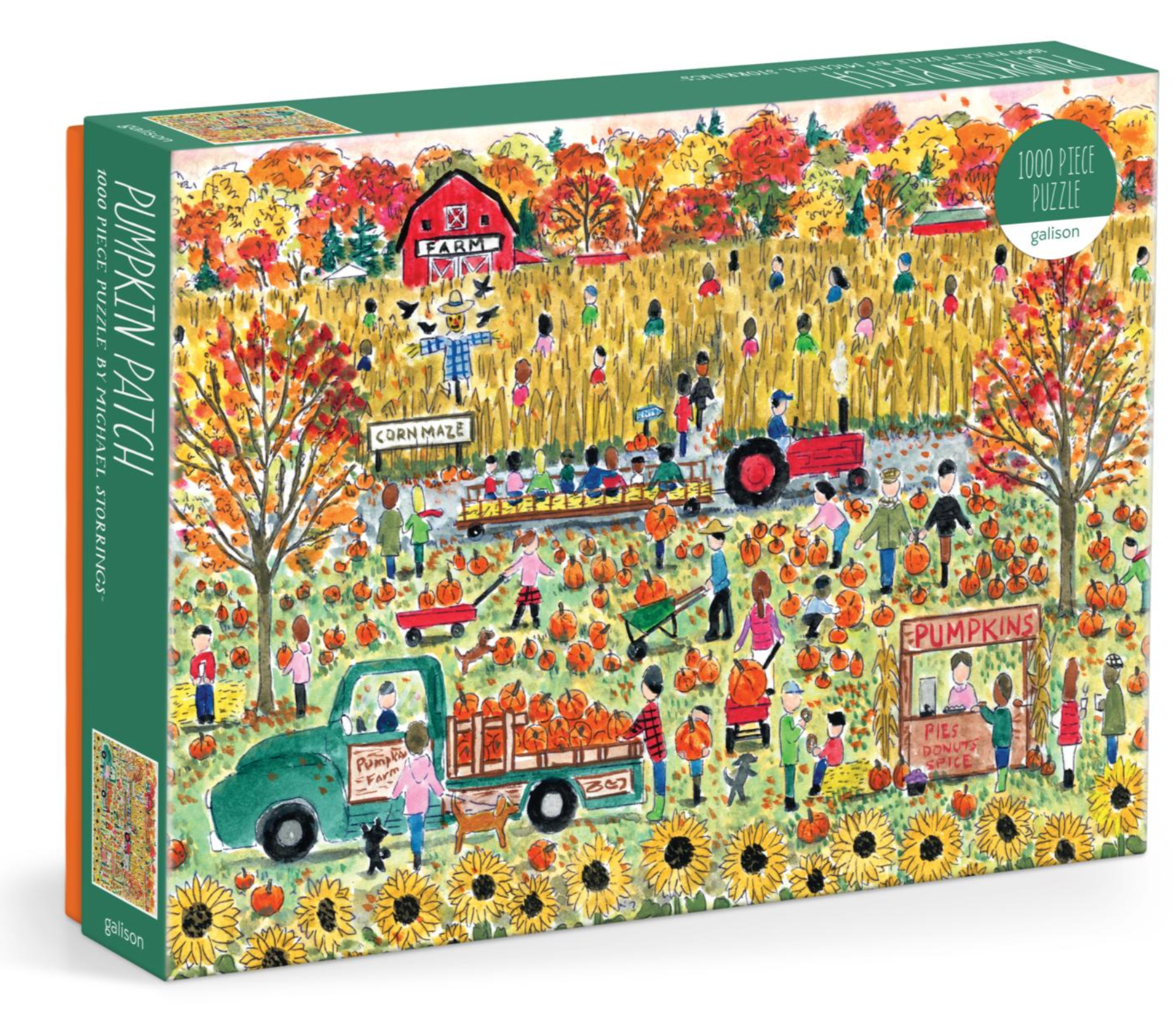 The Michael Storrings Pumpkin Patch 1000 Piece Puzzle depicts a charming autumnal scene at the pumpkin patch, highlighting the seasonal abundance. This puzzle captures a picturesque day filled with flowers, corn mazes, and vibrant fall colors.