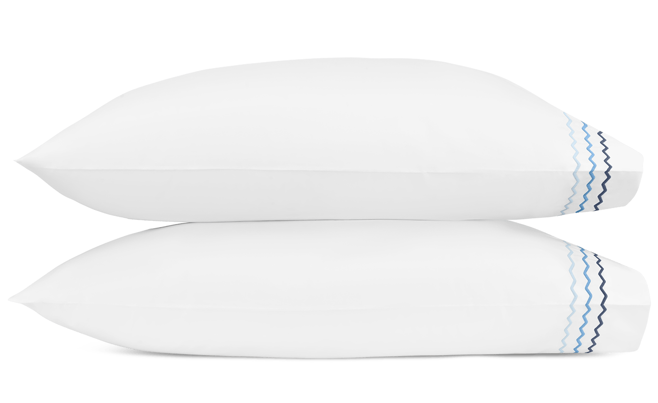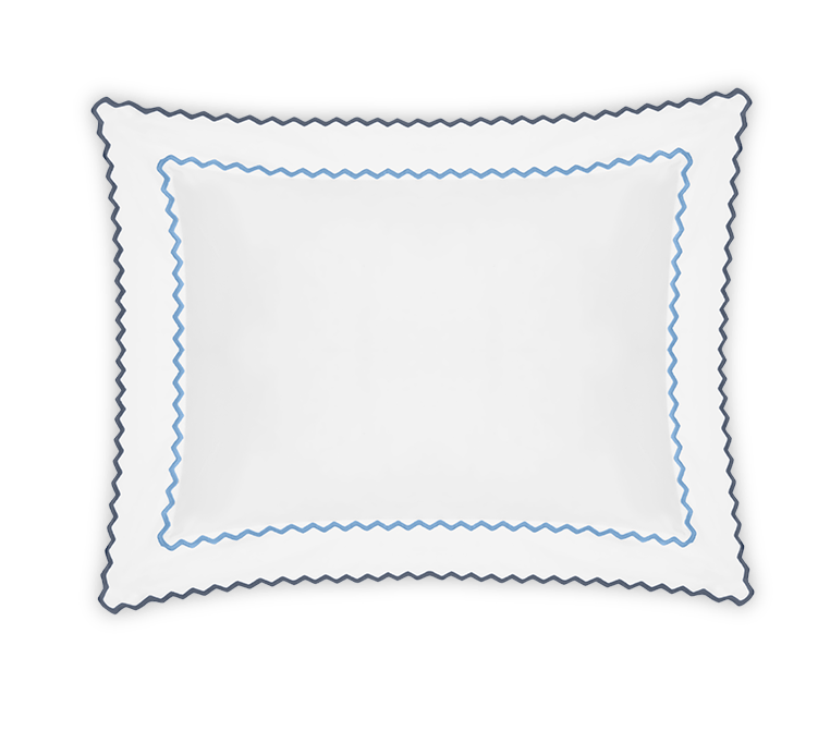 Axel is a lively offering that features playful zigzag embroidery. Woven from long-staple cotton for an exceptionally soft hand, Axel lends a spirited energy to the modern bed with its graphic stitched trim.